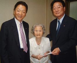 【大阪】民団中央本部の金宰淑団長は「敬老の日」の19日、大阪市在住の金在浩ハルモニ(103歳)を自宅に訪ね、長寿祝賀金を手渡した。