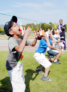 [ オリニたちの「パン食い競争」=山梨、1日