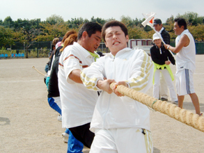 競技では各支部がそれぞれ旗を振り回しながら「がんばれー」と声援を送った。なかでも支部対抗綱引きは声をからしての応援が行き交った。参加選手の表情は真剣そのもの。総合優勝は湖北支部。2位湖西支部、3位湖東支部だった。