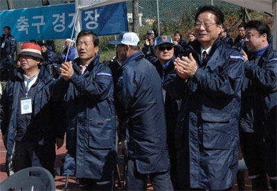 蔚山国体2日目の10月15日、サッカーなどが行われ、昨年に続く連覇をめざす在日同胞は初戦、在サイパン同胞と対戦、に5−0で快勝し、幸先良いスタートを切った。