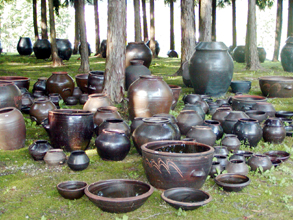 [ 大小さまざまのオンギ(かめ)山梨県増穂町の関さん夫妻自宅敷地のギャラリー「韓」 ]