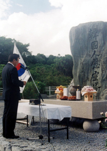 【沖縄】第2次大戦末期の沖縄戦によって死亡した韓国人犠牲者の慰霊祭が10月29日、民団沖縄県本部と沖縄県日韓親善協会(浜本栄吉会長)の共催で、糸満市摩文仁にある韓国人慰霊塔前広場で厳かに行われた。この慰霊塔は75年9月に建立されたもので、約1万1千の同胞犠牲者を祀っている。