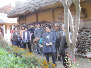 [ 水原市の民俗村で「懐かしい」と話す総連傘下同胞の母国訪問団=11月2日 ]
