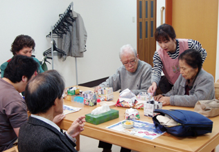[ レクリエーションで紙工芸にいそしむ