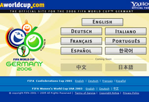 2006ドイツ・FIFAワールドカップ(W杯)の公式サイトでは8日から韓国語サービス