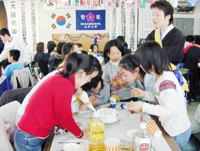 【大阪】生野地区では例年の2倍にあたる80人のオリニが11日、民団生野西支部会館で楽しいひとときを過ごした。今年は初めて区内の民族学級に案内チラシを配布し、民族講師に呼びかけてもらったという。さらに、市民だよりを通じて広報したことも功を奏したようだ。