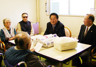 【群馬】民団中央本部の金宰淑団長は16日、群馬県・草津にあるハンセン病の国立療養所「栗生楽泉園」を、群馬県本部の金賢振団長、姜成澤議長、李錫昶副団長らとともに訪問し、同胞在園者代表らと懇談、慰問金を手渡した。金中央団長は、「これまで、いろいろ大変なご苦労があったと思いますが、お元気な様子なのでうれしい。私たちにできることがあれば、なんでも相談してください」と激励した。