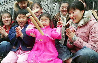 [ 伝統のユンノリを楽しむ子どもたち=1月29日 ]