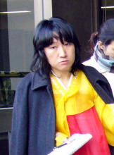 [ 第1回口頭弁論に韓服で臨んだ康さん ]