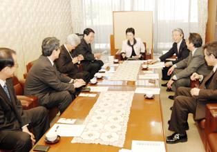 神崎代表ら公明党幹部=左側=は積極的な協力を示した
