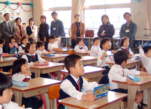 <白頭学院創立60周年>笑顔に安ど 建国小で授業参観