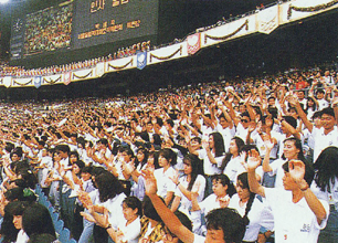 ソウル五輪の開・閉会式の予行演習に参加した在日同胞青年ら(88年9月14日)