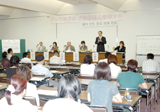 シンポには市民80人が参加した。パネリストとして地元の民団から李燮潤団長(59)と婦人会をはじめとする5人が登壇し、在日の歴史と現状および隣人として生きていくうえで直面している隘路などについて率直に吐露した。
