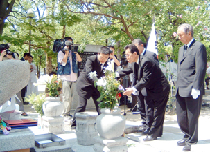 01年8月9日、長崎原爆で亡くなった韓国・朝鮮人の犠牲者追悼早朝集会(長崎朝鮮人の人権を守る会主催)が開かれた。そこで、総連長崎県本部委員長とともに参席した県朝鮮人被爆者協議会の朴ミンギュ会長は、原爆の実相を訴え続けた在日韓国人被爆者の徐正雨さんがその年の2月に亡くなったことに触れ、「生きている限り、反戦・反核、民族統一に努力することを誓う」と述べた。総連同胞にとっても、これが本音であろう。