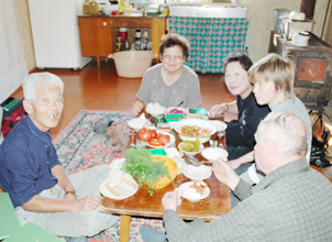 おばあさんは、ソ連時代にも、臼と杵を使って餅をついたこと、日本時代にはモノを頭の上に載せて運んだことなど、暮らしの思い出を語ってくれた。