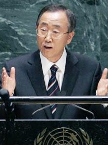 潘国連総長が就任宣誓「平和で公正な世界開く」
