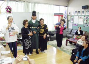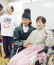 李さんがドラマで実際に使用した朝鮮王朝時代の衣装に着替えてレクリェーション会場に現れると、お年寄りたちの表情が一斉に華やいだ。