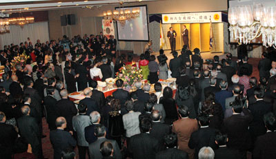民団07年のスタートを告げる中央本部新年会(東京本部共催)が10日、都内のホテルで開催され、中央・各地方本部の幹部や韓日の国会議員ら総勢600余人が参集した。5・17事態の克服と組織再生の使命を負って誕生した鄭進執行部にとって初めてとなる新年会だけに、過去1年の活動空白を早期に埋め、新たな飛躍を準備しようとの意欲が会場を包んだ。