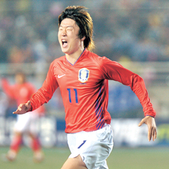 サッカーの北京五輪アジア地区2次予選F組、韓国代表とウズベキスタン戦が28日、韓国安山で行われ、韓国は韓東元(城南一和)の2得点で2−0(前半1−0)と完勝した。韓国は勝ち点を9に伸ばし、同組首位を独走。