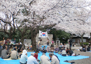 桜が咲くのを待ちかねたかのように各地の民団本・支部が、団員を慰労する野遊会を開いている。参加者は婦人会の準備した料理をほおばり、韓国民謡に体を揺らした。思わず「アー、チョッター」の声も聞かれた。