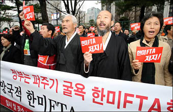 [ 韓米FTA阻止汎国民運動本部のデモ ]