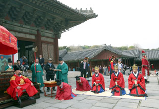 15日、ソウルの昌慶宮明政殿で日本側国会議員も列席して、朝鮮通信使三使(正使、副使、従事官)の任命式が行われた。正使は朝鮮通信使国会議員連盟幹事の朴珍議員が務めた。国王から国書を受け取り、日本(江戸)に向けて出発する様子が再現された。