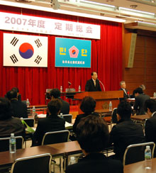 キムチネット協議会(金永悦会長)は14日、東京・南麻布の韓国中央会館で07年度定期総会を開き、今年の活動計画として▽韓国食材の共同仕入れ拡大▽ホームページのショッピングモール開設▽HPリニューアルによる会員拡大▽イベント開催を決めるとともに、定款を採択した。来賓の許孟道・民団中央本部副団長、サッカー日本代表元監督の森孝慈氏や会員ら約60人が参加した。