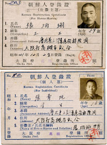 [ 46年に大阪府が全国に先駆け在日の管理・統制を目的とした条例でつくった「朝鮮人登録証」。 ]