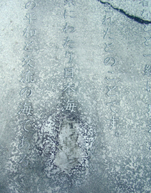 【鳥取】江戸時代の韓日交流の史実を今日に伝える韓日友好記念碑の説明碑に刻まれていた「東海(トンヘ)」の文字が、ごく一部の県民からの苦情を受け、地元琴浦町によって削除されていたことがこのほど、わかった。事実関係を確認した民団鳥取県本部(薛幸夫団長)では15日、琴浦町に原状回復を求める抗議文を提出した。また県に対しても近く善処を要請する。