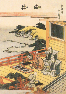 [ 下書を揮毫する通信使(葛飾北斎「東海道五十三次」葛飾北斎美術館蔵) ]