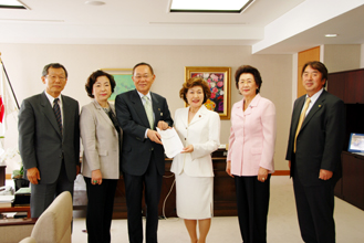民団中央本部の鄭進団長は中央民族教育委員会の余玉善副委員長、婦人会中央本部の康仁順副会長らとともに8日、日本文部科学省を訪問、池坊保子副大臣と面談し、「教育振興基本計画と学習指導要領に関する要望書」を提出、国際理解学習、多民族・多文化共生学習の推進など在日外国人の子どもの教育に関する配慮を強く求めた。
