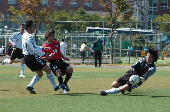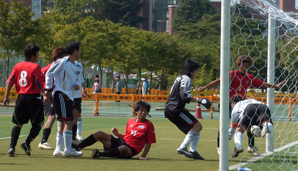光州国体2日目の10月9日、サッカーの予選リーグが行われ、4連覇をめざす在日同胞は初戦、在ドイツ同胞と対戦、守備のミスから失点し0−1で敗れた。