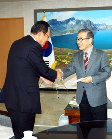 【ソウル】民団中央本部の鄭進団長は1日、許孟道・韓在銀両副団長とともに民主平和統一諮問会議(議長=盧武鉉大統領)を訪問し、金祥根首席副議長に民団の北韓水害義援金3000万ウォンを伝達した。