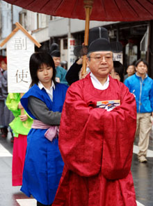 パレードでは、沖縄のエイサーやアジアの民族衣装を着た仮装行列も朝鮮通信使に続いた。民団埼玉県本部の鄭平晋団長が正使役を務めた。