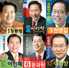 候補登録は25、26日に行われ、25日に大統合民主新党(旧与党系)の鄭東泳氏、ハンナラ党(最大保守野党)の李明博氏、民主労働党(左派系野党)の権永吉氏、民主党(旧与党系)の李仁済氏、国民中心党(中道右派)の沈大平氏、創造韓国党(旧与党系に近い新党)の文国現氏ら9人が登録。26日には総裁を務めたハンナラ党を離党して無所属で出馬の李会昌氏、国民連帯の李寿成氏ら3人が登録した。