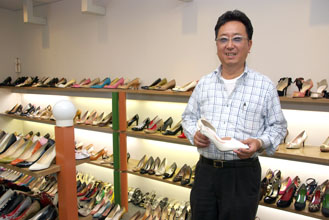 「点数は長田でも3本指に入り、新商品だけでも200種類は下らない」。納入先は若者向け専門店や百貨店など。商品は高いヒールが中心。ヒールのセッティングが難しく、一番重要な部分だ。