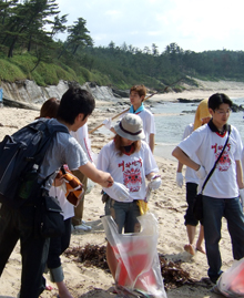 全国の青年会メンバーが、京都の琴引浜で漂着ゴミを集め、環境保全運動に一役=6月2・3日