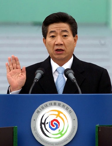 [ 就任式で宣誓する盧武鉉大統領 ]