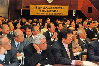 1994年以後、民団の最重要課題のひとつとして運動を推進してきましたが、日本国会の衆参での与野党逆転現象や今年中には行われるであろう衆議院議員選挙、新大統領の訪日などを視野に入れ、今年を地方参政権の獲得に向けた正念場と位置付け、最大限の組織力量を傾注していきます。