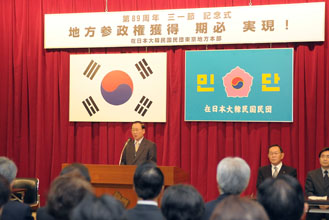 中央本部の鄭進団長は記念辞を通じて、「韓日共生の新時代を創る先頭に立つ決意を新たに、積年の課題である地方参政権の獲得に総力をあげよう」と呼びかけた。