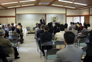 講演に立った国松県国際協会会長は「滋賀が多文化共生の実験場になってほしい。人に役立つ人を育てるのがセンターの役割。その応援団として支えていきます」と述べた。講演を聞いていた地元自治会の会長は、「この施設を使ってさっそく台湾・フイリッピン料理の講座を予定しています。自治会も一緒になって支援していきます」とエールを送った。