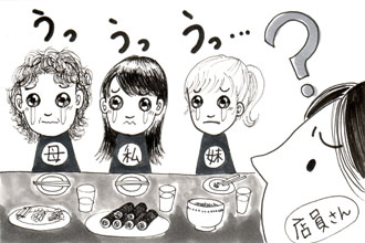 すると母は、店員さんを呼び出して「私たちは、料理が辛くてびっくりして泣いているから気にしないでね」と言った。妹にも「これが辛くて泣いているのよ」と言った。