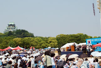 【大阪】永住外国人への地方参政権付与を求める集会「韓日親善交流マダン」が18日、大阪市中央区の大阪城公園「太陽の広場」で開かれた。民団大阪府本部(金漢翊団長)が主催した。会場は府内33支部と傘下団体、日本の各種友好団体の積極的な呼びかけが功を奏し、同胞・市民約1万2000人で盛り上がった。民団大阪による1万人規模の集会は10数年ぶりのこと。
