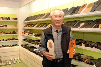 2000年に長男の政弘さんに社長職を譲り、会長になった。震災後は靴の完成品も手がけ、自主開発に力点をおくようになる。「底材にも流行があるが、軽くて、かえり(弾力性)のある靴は、技術がないとできない。金型は中国でできても、完成品の仕上げはこちらでするしかない」