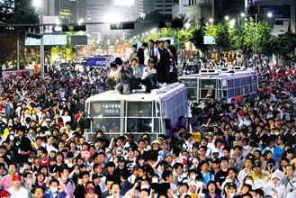 [ ソウルで連日繰り広げられている米国産牛肉の輸入再開反対のデモ