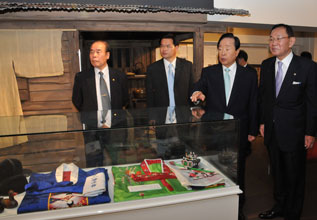 訪日中の金泳三元大統領は6月13日、鄭進団長の案内で韓国会館別館の在日韓人歴史資料館に足を伸ばし、在日同胞が日本へ渡航した事情、当時の生活実態、解放後の暮らしを示す展示品の数々を興味深そうに見て回った。