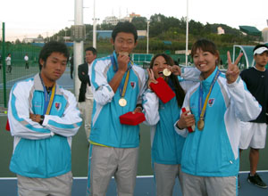 ここ数大会、不振が続いたテニスが華々しい復活を遂げた。男子は安栽亨・金淨泰の近畿大学コンビがシングルス、ダブルスともに金メダル。