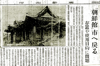 [ 「朝鮮館」のおもかげを伝える1950年10月20日付の河北新報 ]