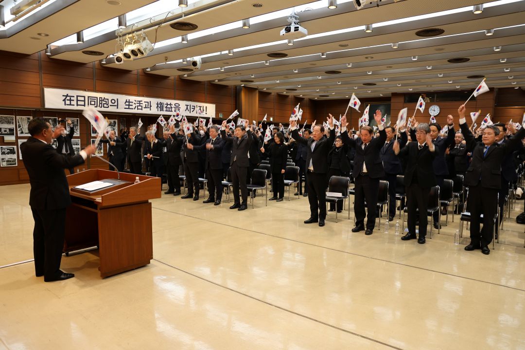 続いて、①三一独立運動の民族自主・自尊の精神を継承し、在日同胞社会の団結と誇りを盤石にする ②韓半島の平和と発展、祖国の繁栄に寄与し、平和統一に向けた意志を拡大する ③創団80周年を契機に未来志向の在日同胞社会を構築し、次世代育成と同胞の和合と統合を促進するなど、5項目の決議文を満場一致で採択し、最後にスローガン斉唱と万歳三唱で式典を締めくくった。