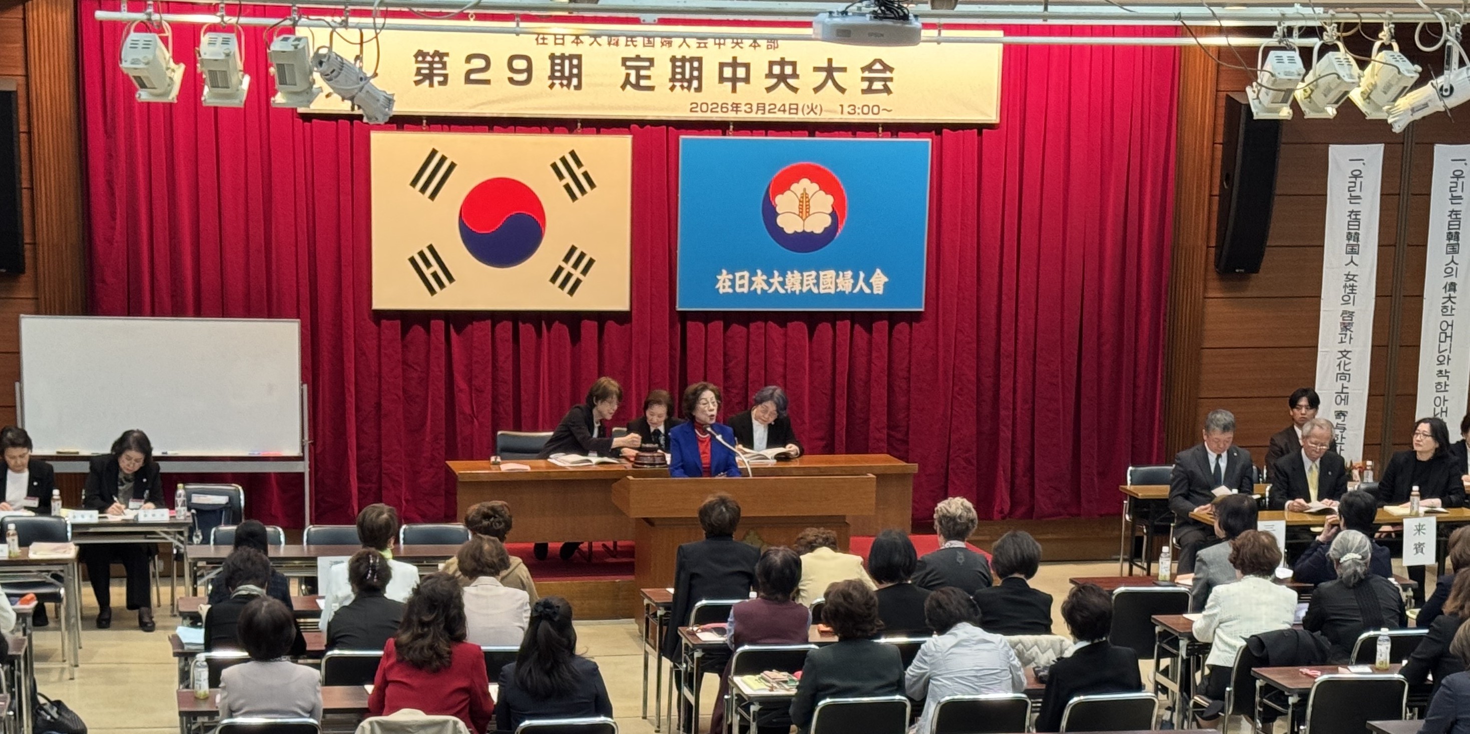 任期満了に伴う役員改選では、会長候補に李正子氏(東京本部顧問)と金貞子(中央本部副会長)も立候補した。参加した中央委員・代議員215人の投票により孫氏が過半数を上回る128票を獲得した。
